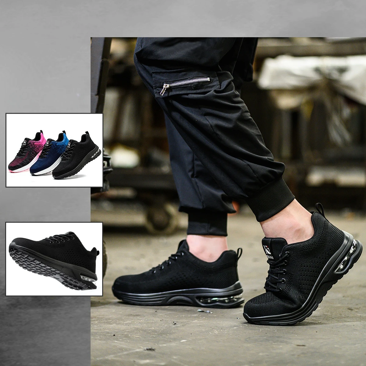 Zapatos de seguridad con amortiguación de aire para hombres y mujeres, zapatill
